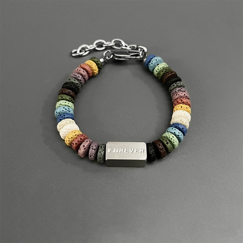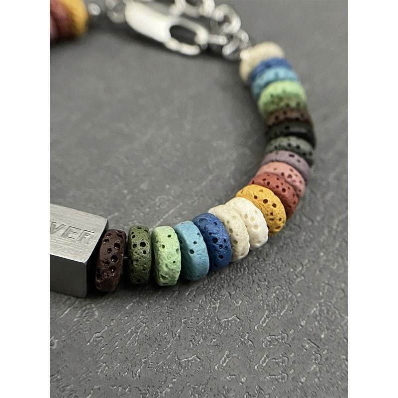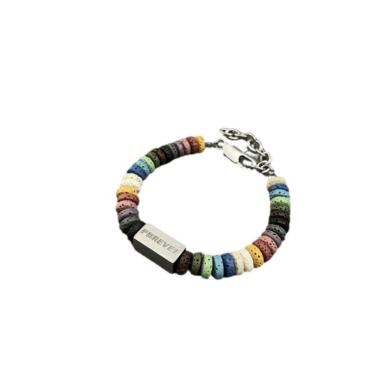 🎉🎉🎉Gradient volcanic beads layer with a metallic FOREVER bar—like a hidden declaration~ It stands out daily and serves as a friendship lasts code when gifting. The contrast of colors and silver instantly elevates your look. .