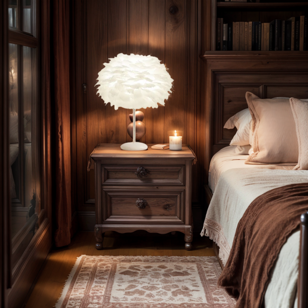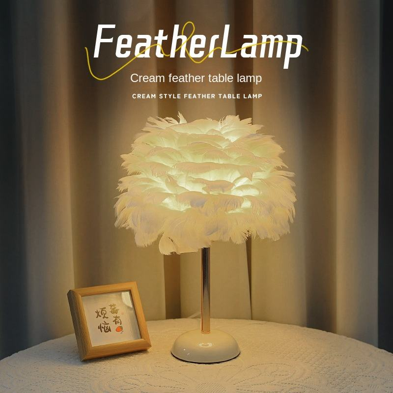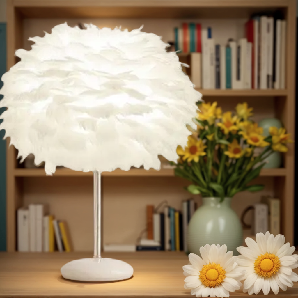 🎇BEDROOM ESSENTIALS!Modern luxury white feather crystal table lamp goose feather study table lamp bedroom bedside eye protection reading lamp