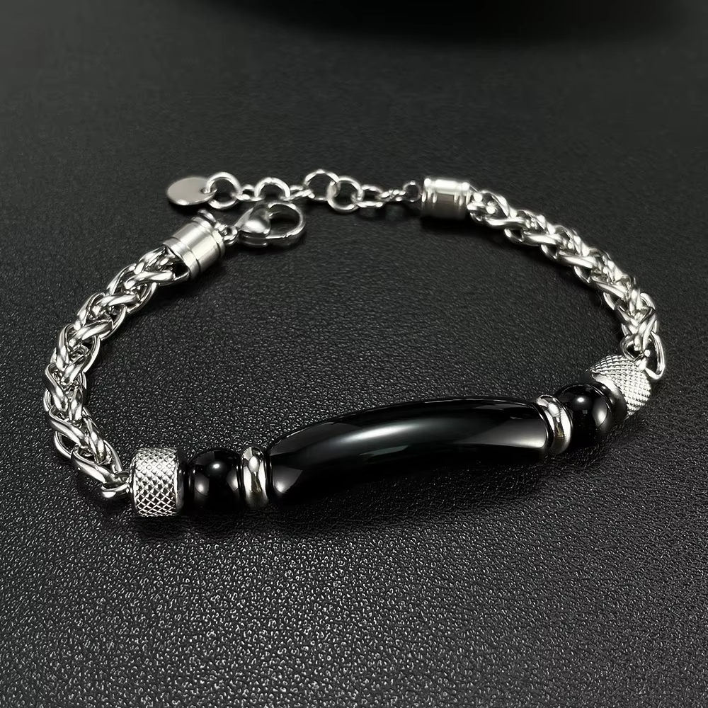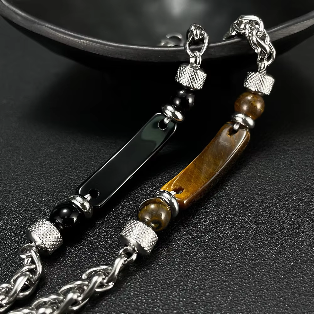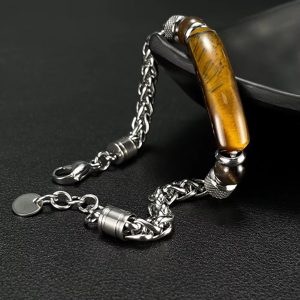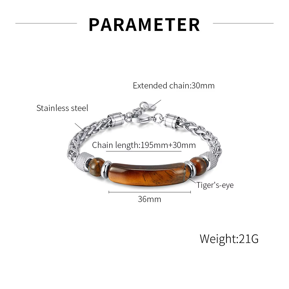Fashion retro gem jewelry bracelet tiger eye stone bar stainless steel chain men's handmade bracelet